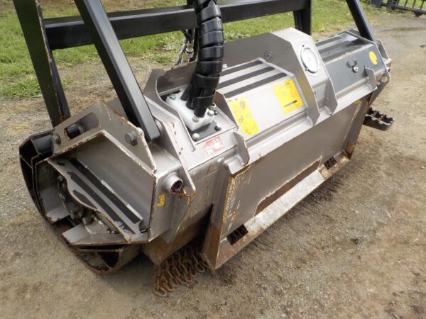 High Flow skid steer shredder mulcher with several tooth options for different applications including rock resistance teeth for tough areas.