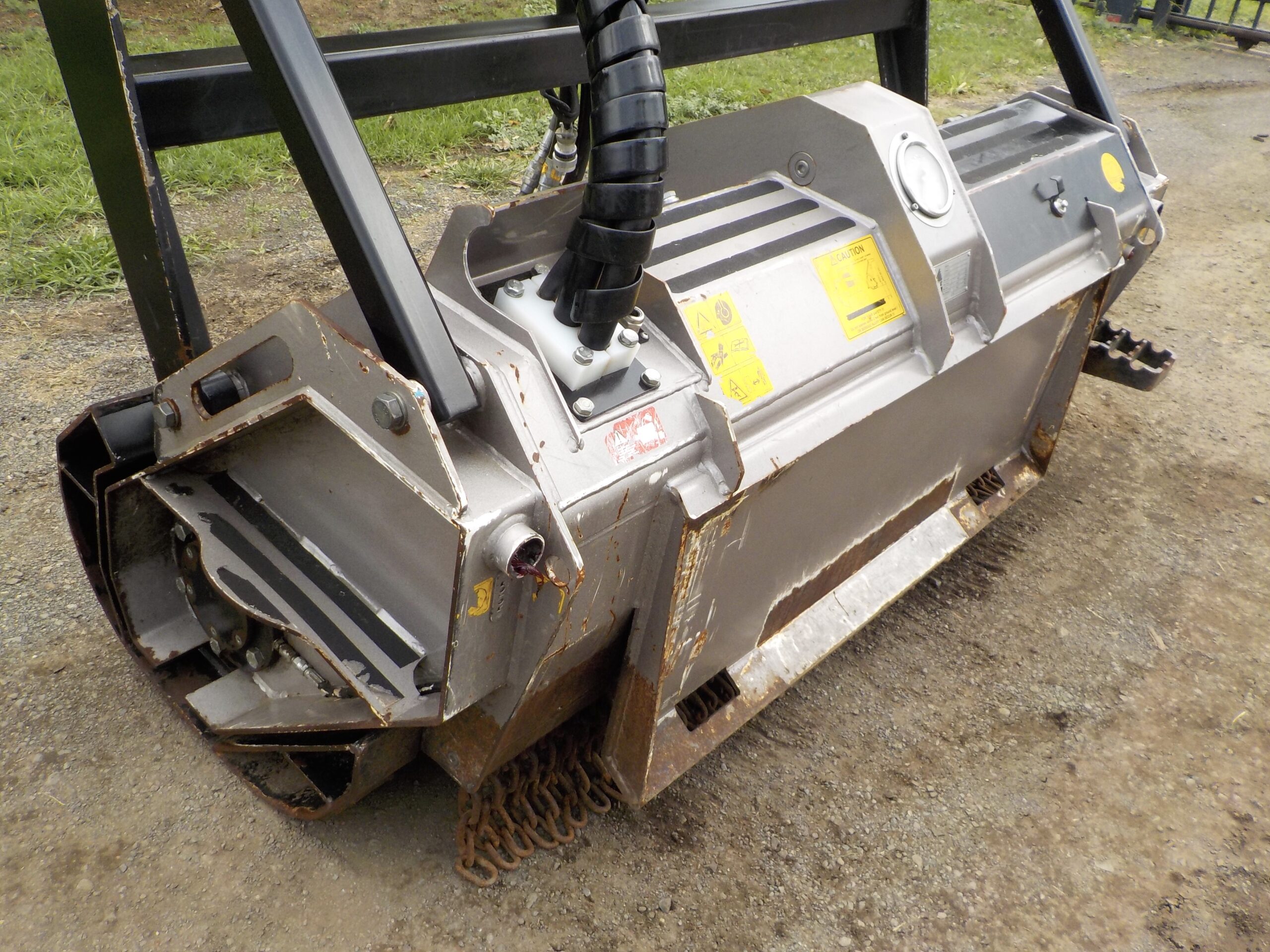 Fitted with the optional diverter valve kit for using the mulcher with skid steers with only three hydraulic fittings.